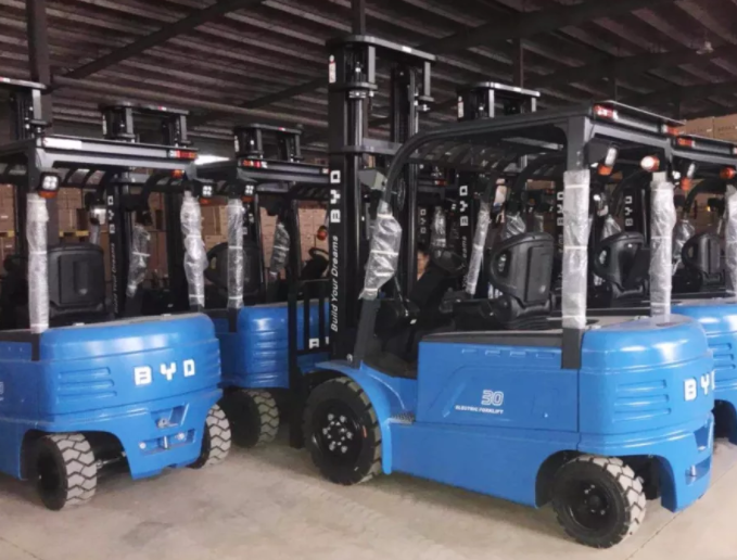 **,比亞迪叉車為濰坊基地提供近百臺(tái)平衡重式叉車;